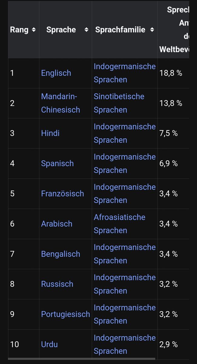Naja Platz 5 und nicht halb so verbreitet wie spanisch 🤷