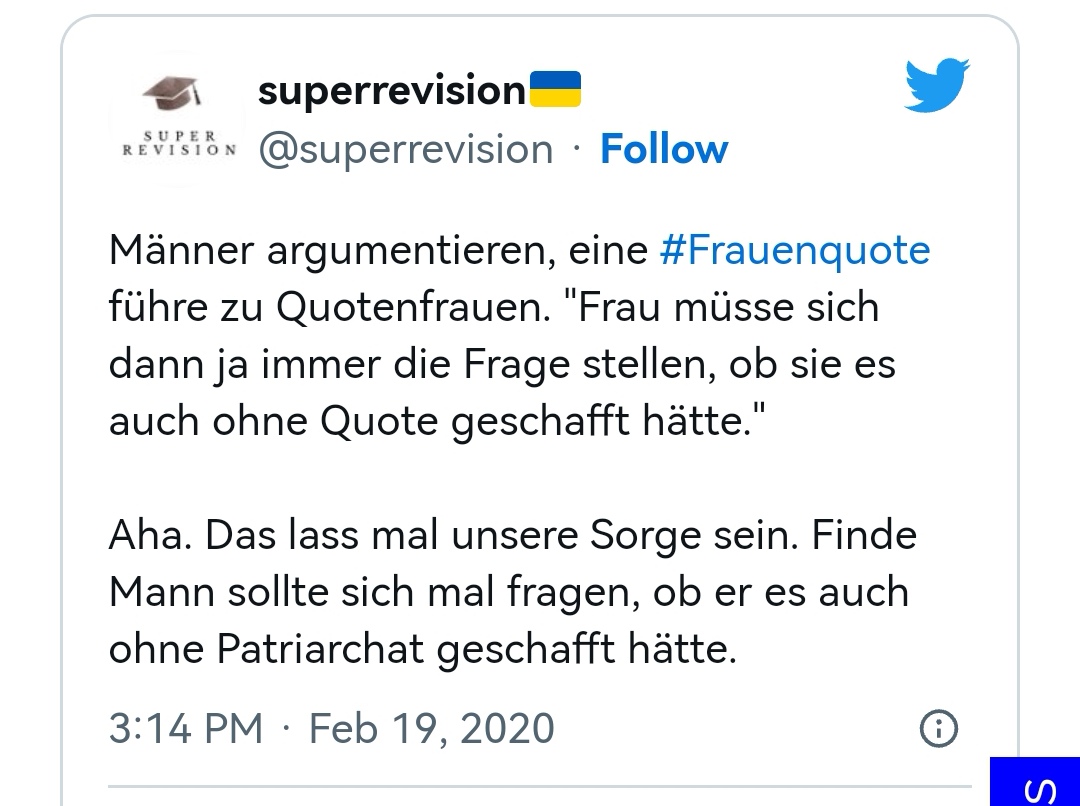 Es wird aber sofort mit dem "Argument" Schminktussi abgeschmettert.