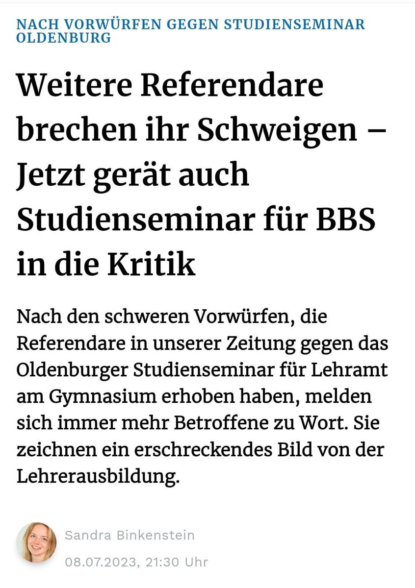 Es geht in dem ersten Artikel um das Seminar fürs Gymnasiallehramt. Das ist direkt neben dem BBS-Seminargebäude. Wir sind/waren zwar manchmal in deren Räumen, aber mehr Berührungspunkte gibt es nicht. Anekdote: Uns (BBS-LiV) wurde untersagt, durch das Gebäude (Gym-Seminar) zu gehen, um die Räume aufzusuchen, in denen wir unsere Seminarsitzungen hatten. Wir wurden von der Gym-Seminarleitung gebeten, draussen zu warten, bis jemand den Schlüssel für den Hintereingang hatte. Einmal wurden wir sogar von deren SL in persona abgefangen und durch die Vordertür wieder rausgeschickt. Kein Gerücht. Das betraf eine Kollegin und mich. Muss man sich mal vorstellen.