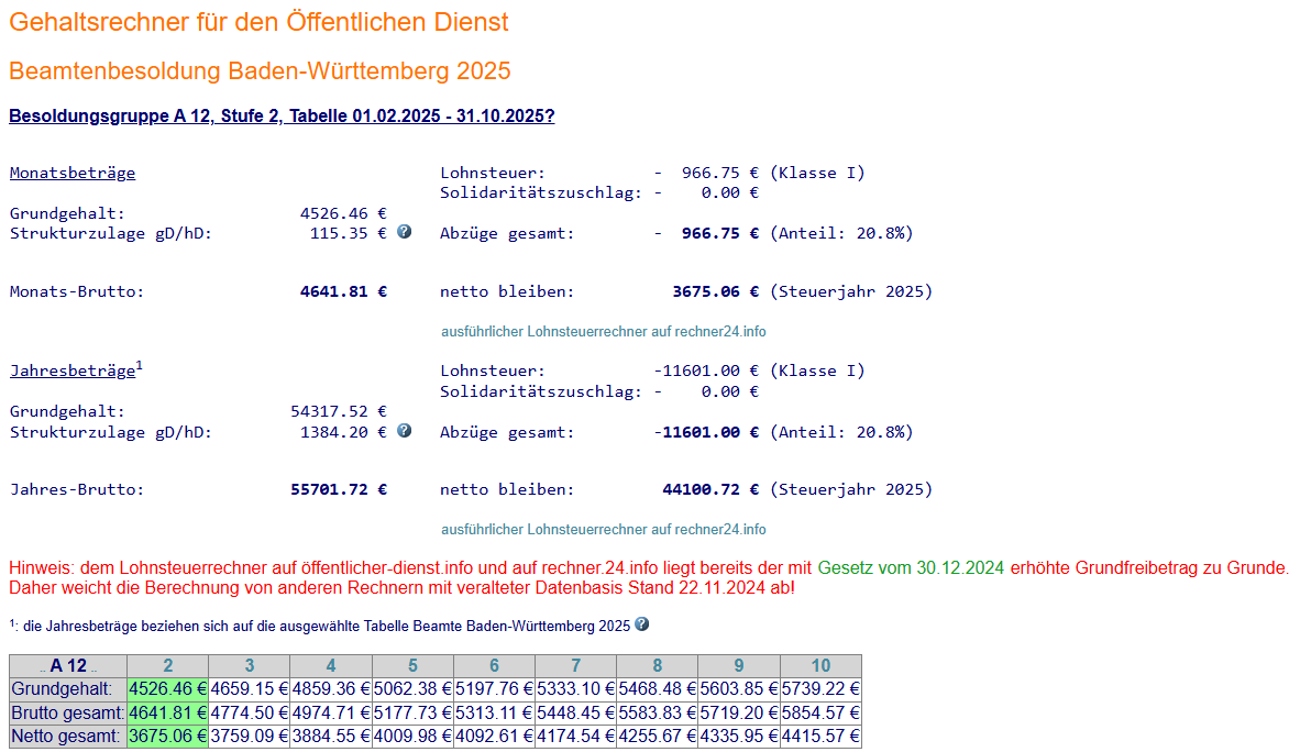 Der Besoldungsrechner für Baden-Württemberg gibt also nicht die Besoldung für Baden-Württemberg wieder? Merkwürdig.