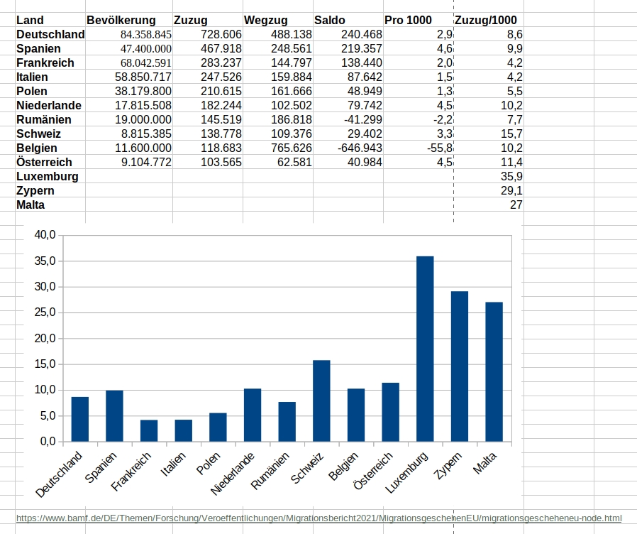 • Getilgt? Ich habe einfach eine Auswahl getroffen um zu zeigen, dass gerade die kleinen europäischen Länder einen erheblichen Zuzug an Migrant*innen verbuchen. ...