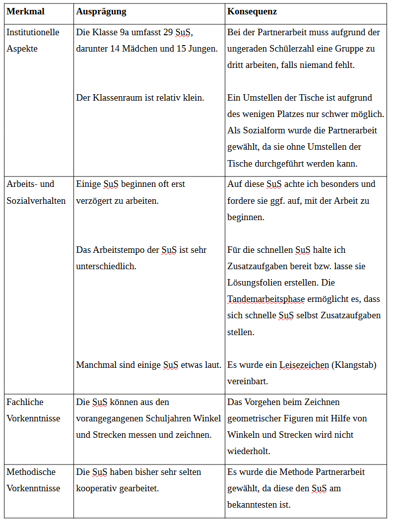 Alles was deine Einschätzung der Schüler/Lerngruppe betrifft kommt in die Lehr- und Lernvoraussetzungen: