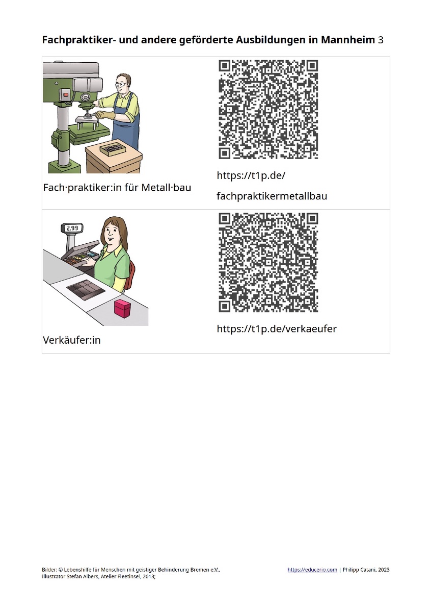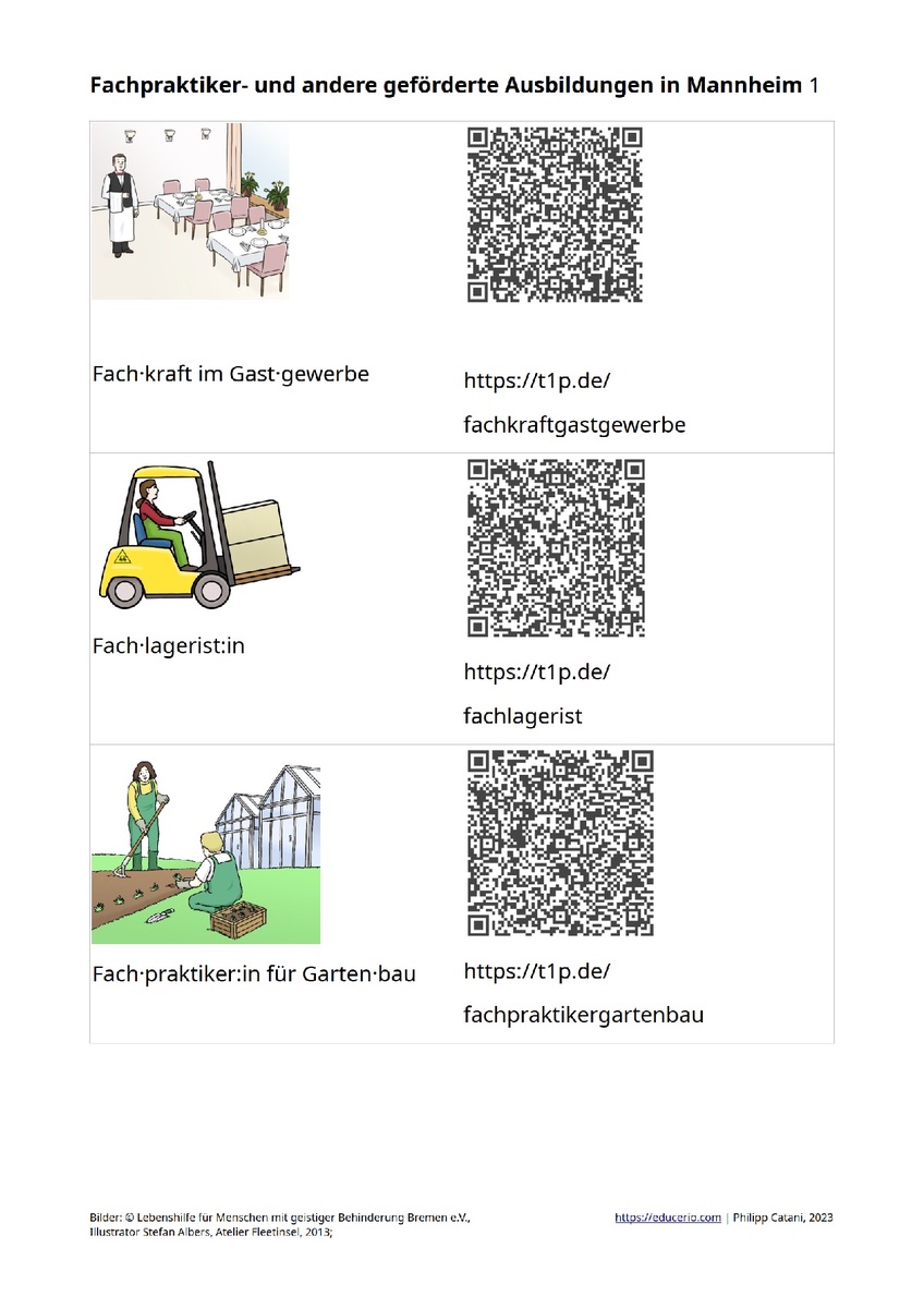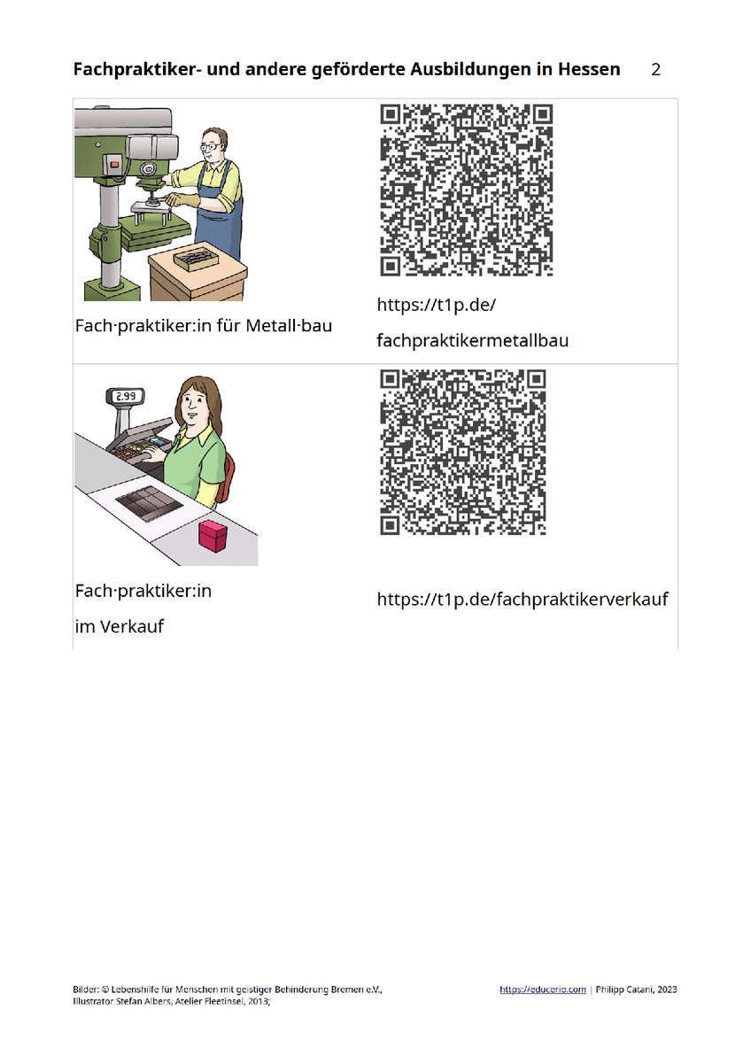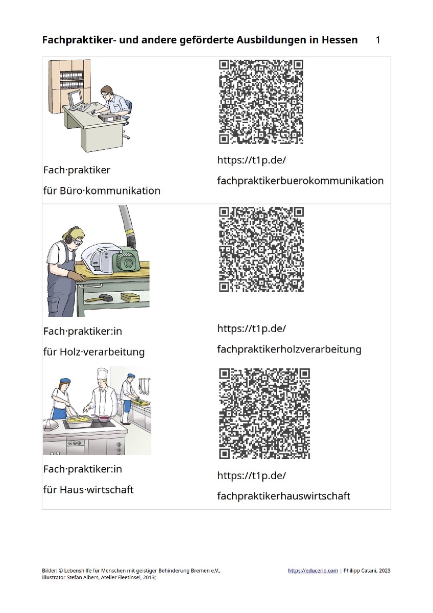 Die Fachpraktiker-Berufsbeschreibungen sind via QR-Code nebst gekürztem Link (siehe Bilder) oder direkt auf meiner Homepage abrufbar.