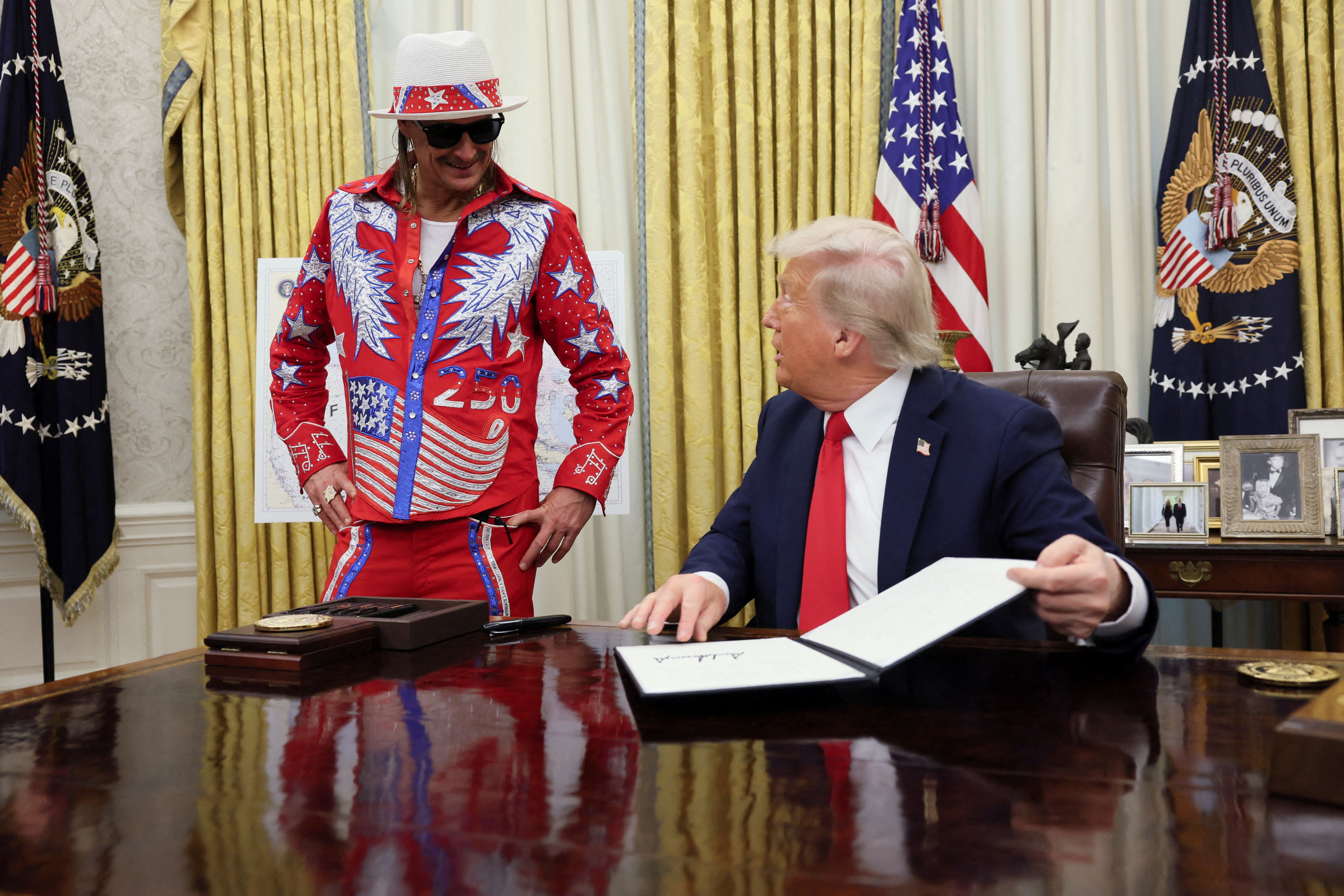 Immerhin gibt es noch Leute, die einen ordentlichen Anzug tragen, wenn sie im Oval Office das Trumpeltier besuchen...