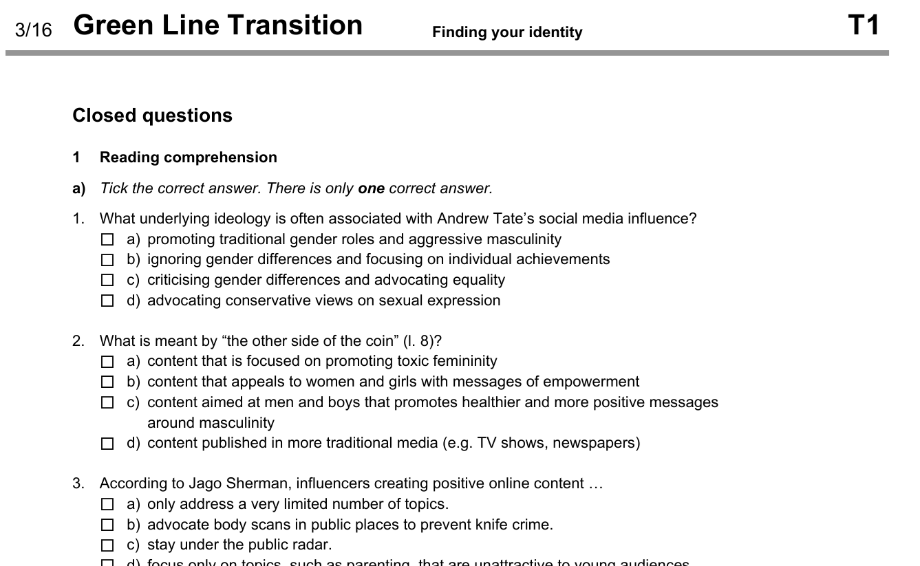 Das erste Mal unterrichte ich selbstständig und bin gerade dabei, meine ersten Klausuren zu planen. Da ich das Cornelsen Lehrwerk Context Starter (neue Ausgabe) verwende, bin ich etwas ratlos. Die vorgeschlagenen Aufgaben zur Leistungsmessung sind eher auf die Qualifikationsphase ausgerichtet und enthalten keine Multiple-Choice-Fragen zum Textverständnis, die für die Einführungsphase ja eher typisch sind.
