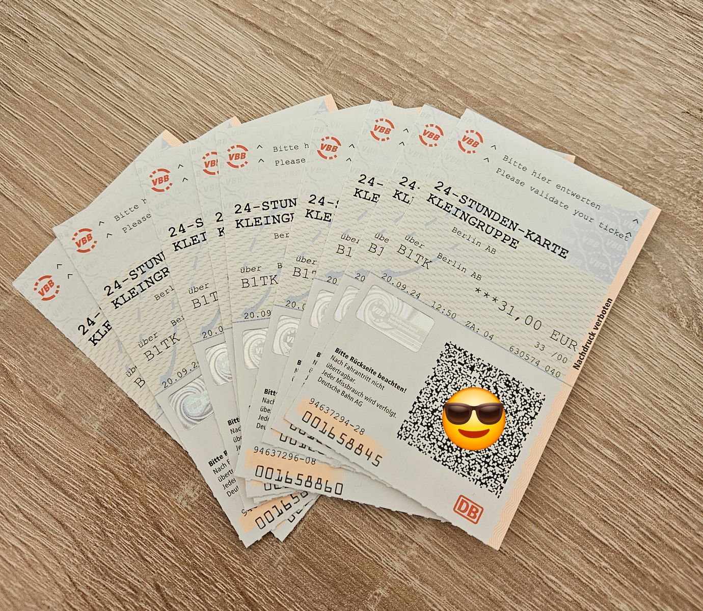 hat jemand Interesse / Bedarf an 24-Stunden-Tickets Kleingruppe für Berlin für den Bereich AB? Sie sind für 5 Personen gültig ab Entwertung für 24 Stunden.
