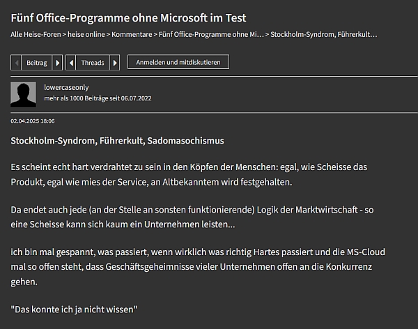 • Irgendson Kommentar auf ner Heise-Seite ...