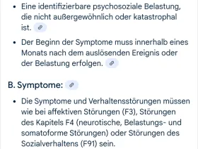 Nein, das geht nicht problemlos. Die Diagnosekriterien schließen anhaltende Beschwerden über den 6. Monat nach dem Ereignis aus.