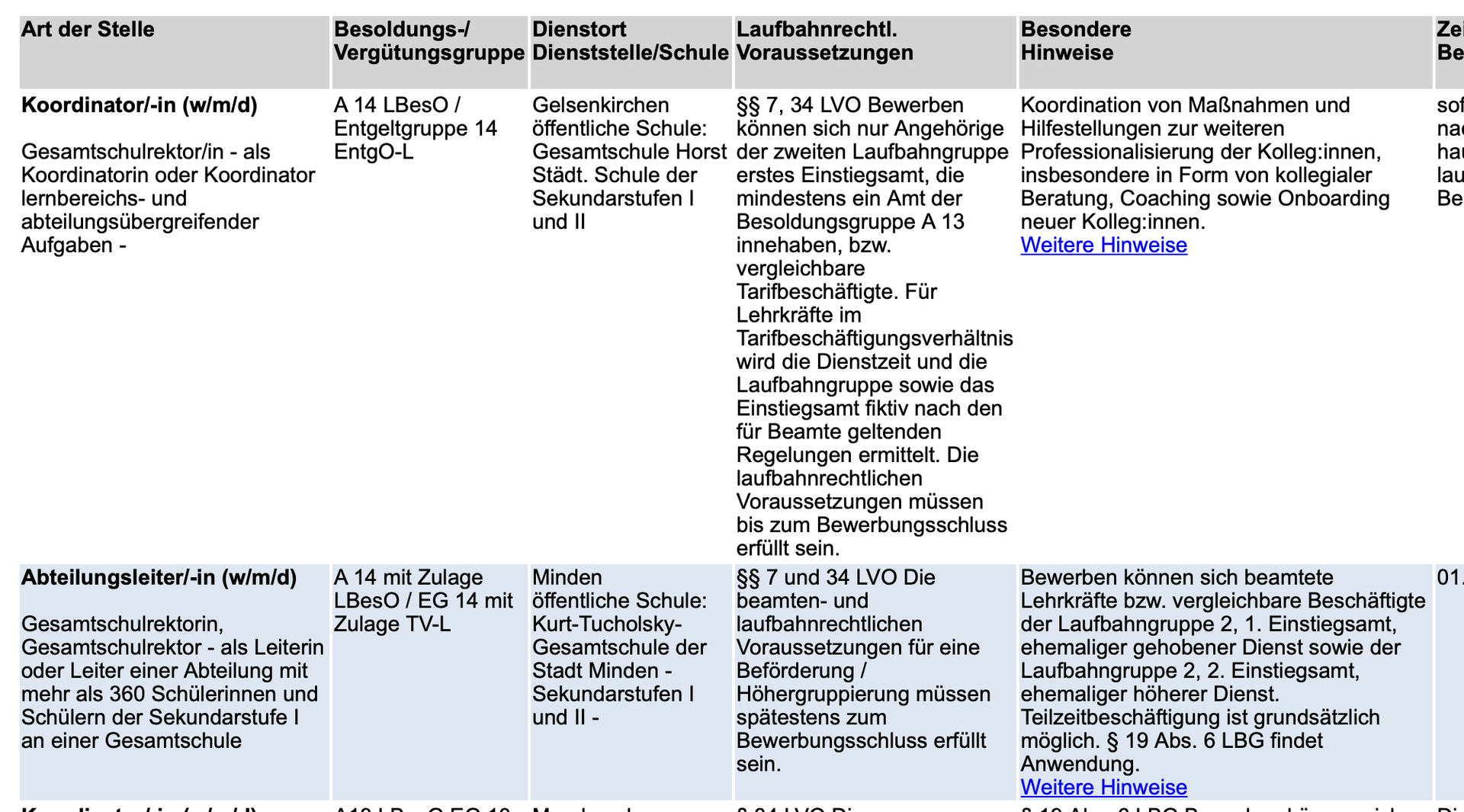 Wie sieht das denn nun bei den A14-stellen aus, die im gD in Frage kommen, respektive "Realschulkonrektor" bzw. "Gesamtschulrektor"? In STELLA finde ich zum einen Stellen, bei denen es heißt