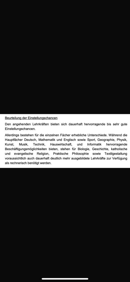 Ich habe mich intensiv mit dem Thema beschäftigt und u. a. die im Bildungsportal des Landes veröffentlichten „Vorausberechnungen zum Lehrkräftearbeitsmarkt in Nordrhein-Westfalen“ (März 2023) gelesen. Dort werden für das Lehramt an Gymnasien und Gesamtschulen für das Fach Sport eingeschränkte bis gute Einstellungschancen bei mittlerer bis großer quantitativer Bedeutung sowie für das Fach Geographie gute Einstellungschancen bei mittlerer bis geringer quantitativer Bedeutung ausgewiesen.