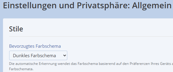 Es gab hier auch schon einmal die Einstellung. Bzw: es gibt sie sogar noch*. Aber der Modus ändert sich nicht, wenn man "Dunkles Schema" auswählt.