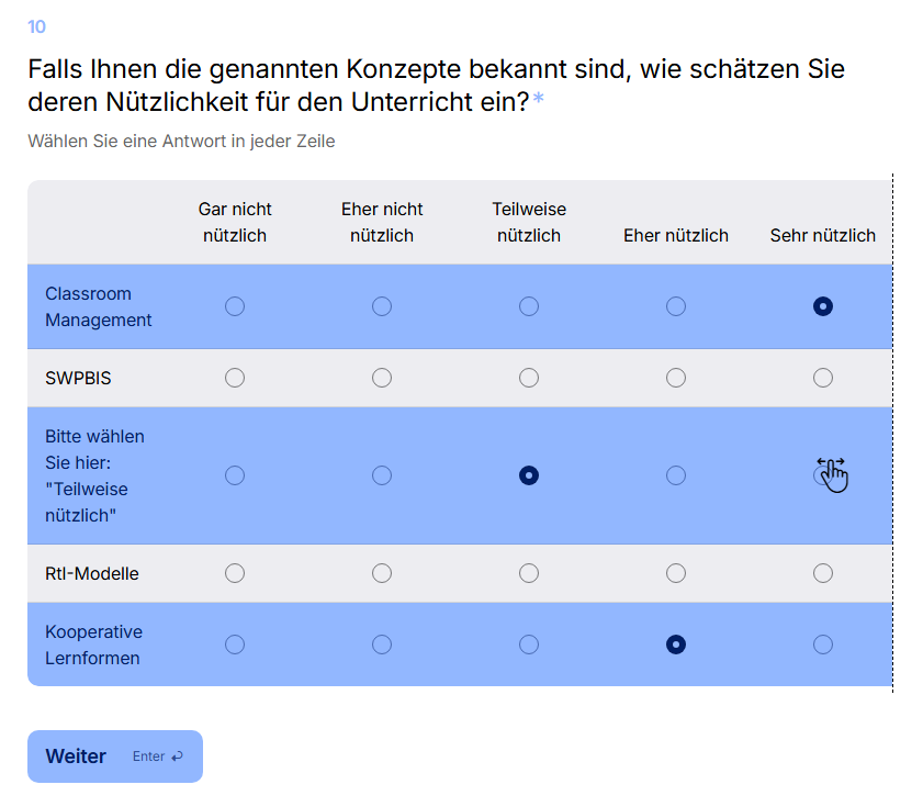 Die Teilnahme dauert etwa 3-7 Minuten und richtet sich an Lehrkräfte und Lehramtsstudierende.