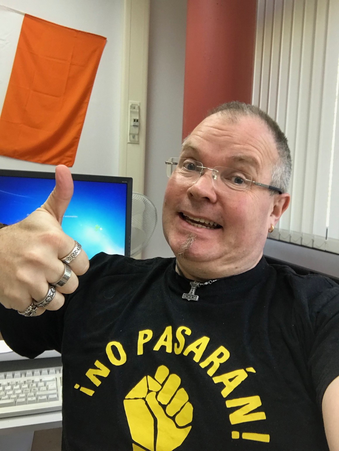 Sowas darf man jedenfalls auf Konzerten oder Demonstrationen tragen, aber nicht gerade in der Klasse vor Jugendlichen.