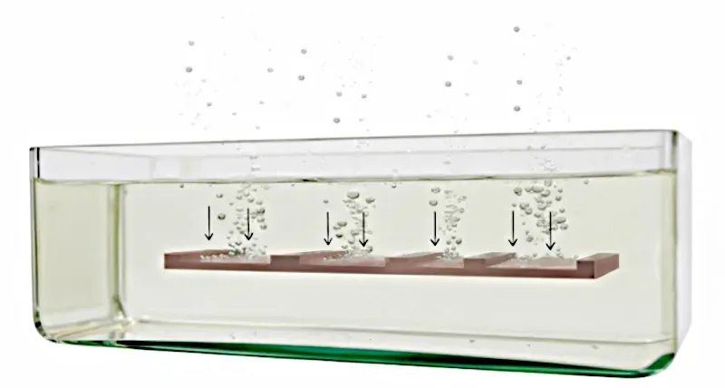 Die Grafik zeigt die Gasentwicklung beim Ätzvorgang von Kupfer mit Salpetersäure. Dabei entstehen nitrose Gase, die ein Lungenödem verursachen können.