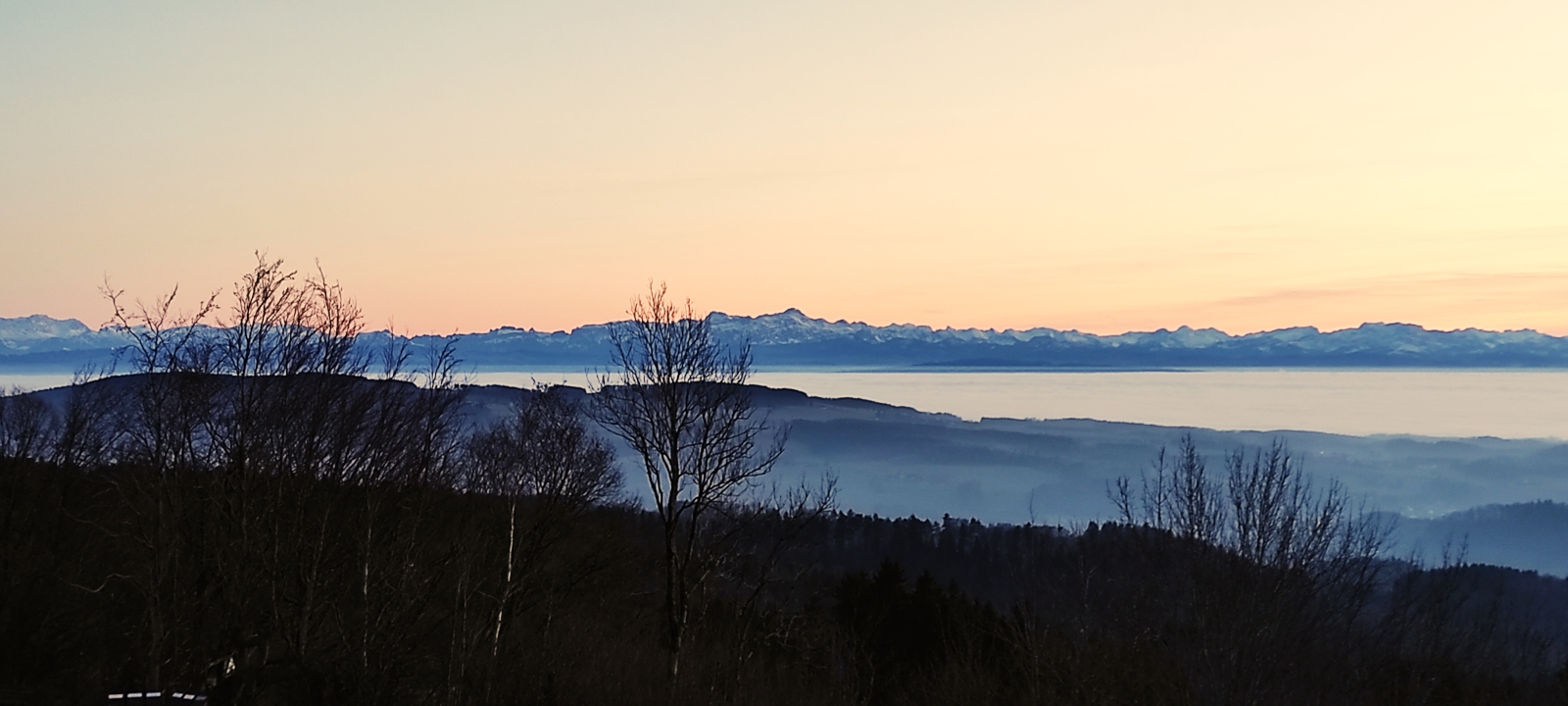 Hier der Blick von unserem "Hausberg" - dem Höchsten - über das Meer (das schwäbische) - aufgenommen vor 4 Tagen - rüber zu den potentiellen Abfahrten