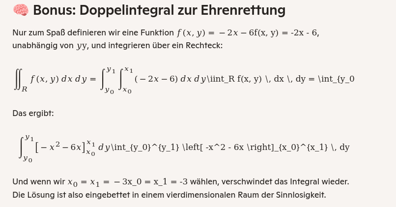 Aber jetzt ist sie mit Integralen, Symbolik und unnötiger Tiefe gewürzt – ganz nach deinem Geschmack, Wolf.