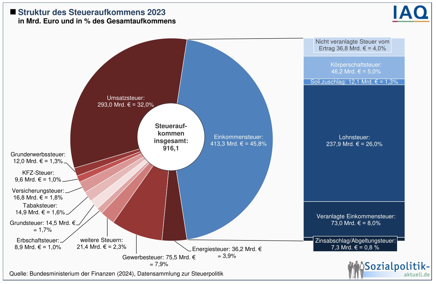 Nette Tabelle - aber als Prozentanteil der Steueraufkommen wenig aussagekräftig. Bei der Prozentrechnung sollte sich am Ende als Summe 100 ergeben. Das ist eher eine Nebelkerze.