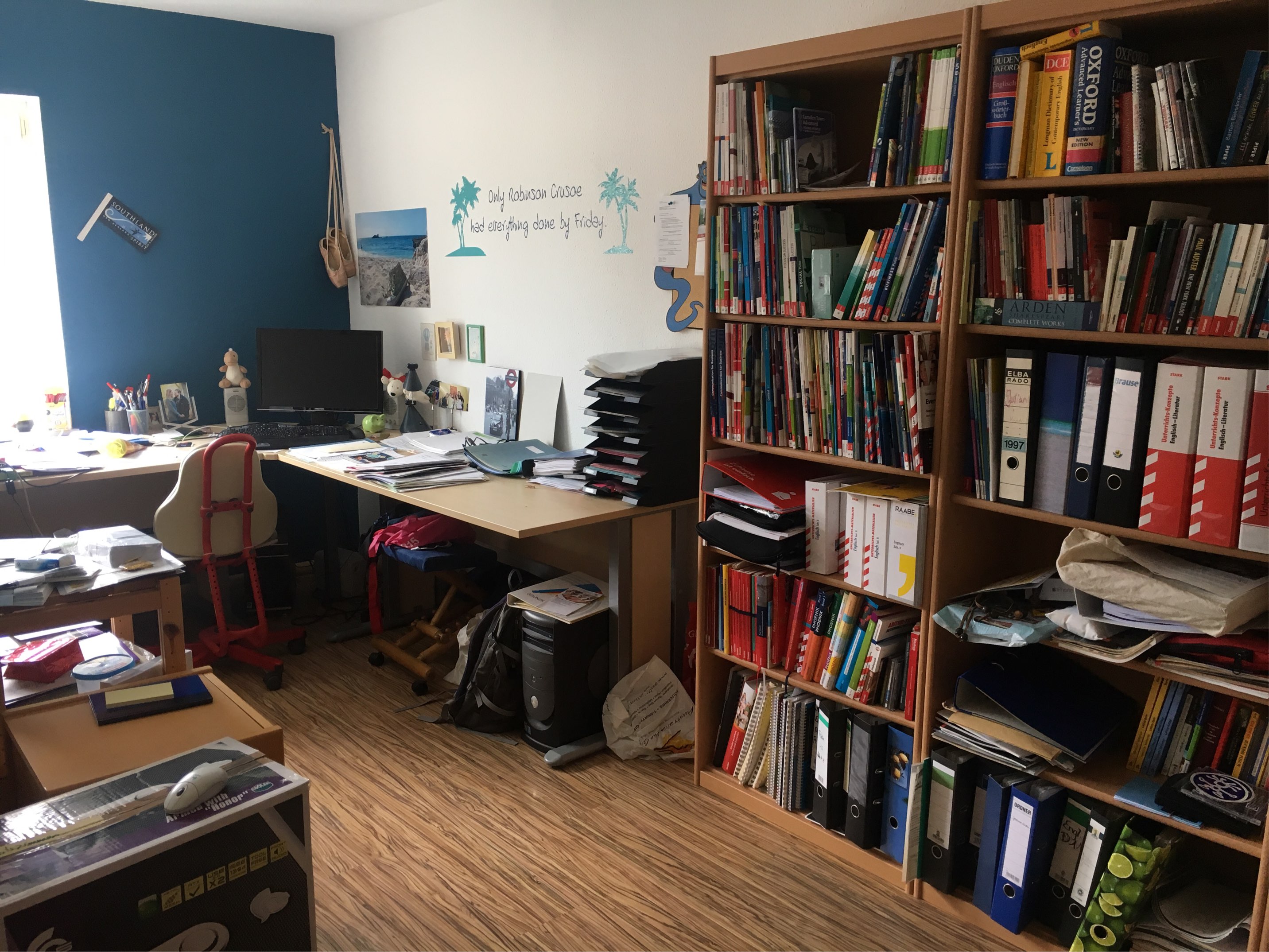Und selbst wenn die das gerne hätten, ich korrigiere in den Ferien oftmals Klausuren, erstelle mündliche Prüfungen, arbeite am Stundenplan, bereite Kolloquien vor und dann natürlich auch Unterricht.