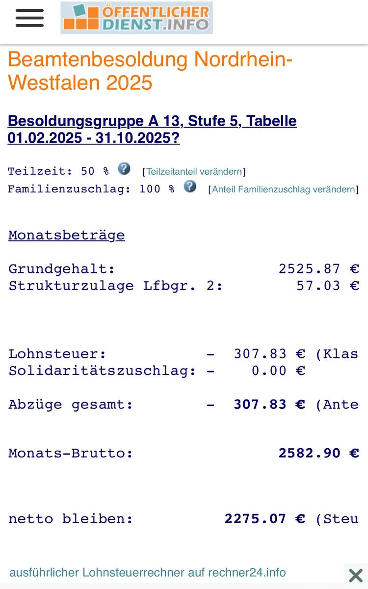 Wenn ich hier Zahlen nenne, gehe ich von Vollzeit, und bei den Familienzuschlägen absichtlich von der zweithöchsten Mietstufe 6 aus, weil ich selber in einer solchen Stadt lebe. Die Familienzuschläge sind in Mietstufe 6 einfach krank und gegenüber Angestellten und kinderlosen Beamten keinesfall fair. Jeder, der heutzutage in Großstädten Mieten zahlen muss, leidet unter der hohen Mieteninflation und aus welchem Grund sollten Zuschläge nur an Kinder gebunden sein?