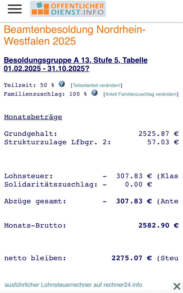 Und natürlich existieren außerhalb des Beamtentums stattliche Kompensationen für Menschen deren Lebensstandard aufgrund von mangelnden Einkommen für ihre Familie zu niedrig ist. Bürgergeld für Aufstocker, But für Kinder, Kinderzuschlag für Eltern, Sozialticket usw., Lies mal das Urteil zur Besoldung kinderreicher Beamter und betrachte wie sich die der Betrag zusammensetzt, den das BVerfG damals ermittelt hat.