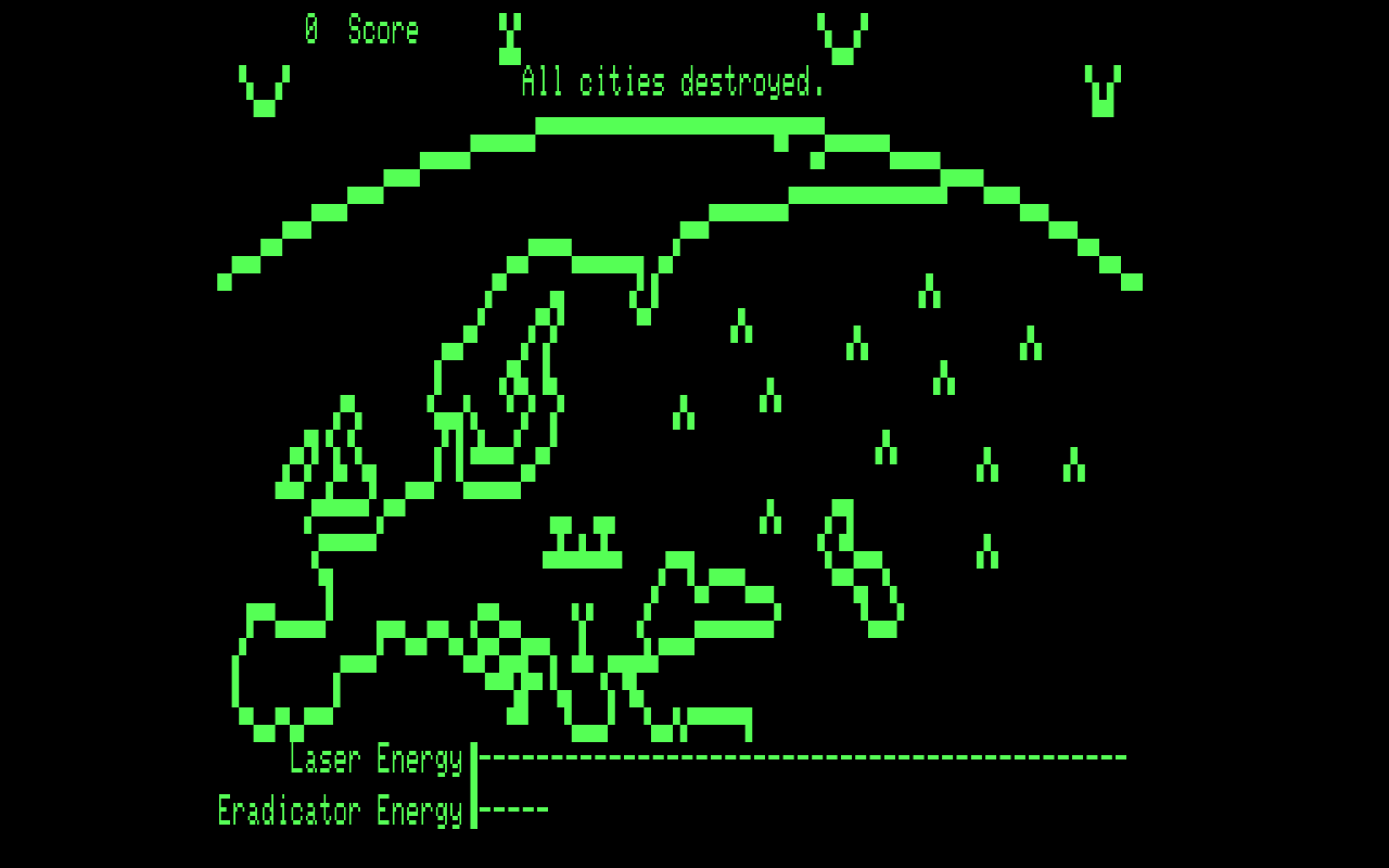"Laser Defense" aus dem Jahr 1982 auf dem TRS-80, eine Variante von "Missile Command", dass im "Real Life" des Kalten Krieges spielt. Der historische Kontext war die Nuklearbedrohung und Reagans SDI-Programm. Methodisch war das eine Erweiterung des Quellenbegriffs auf mal etwas anderes.