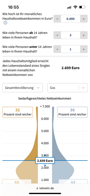 Es ist nicht seriös, wenn ich meine Daten bei diesem Vergleichsrechner (Link siehe oben) eingebe und feststelle, dass ich nicht zu den 10-15% Reichsten im Lande gehöre sondern 46% in Deutschland mehr Geld zur Verfügung haben als ich?