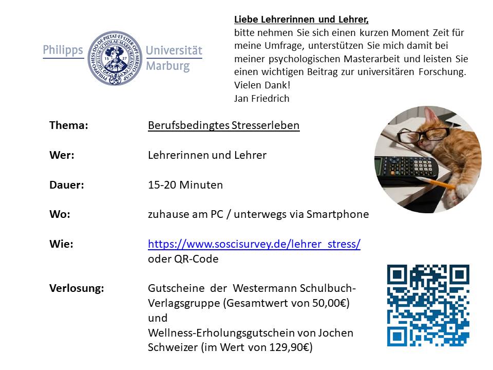 Hier gehts zur Umfrage: https://www.soscisurvey.de/lehrer_stress/