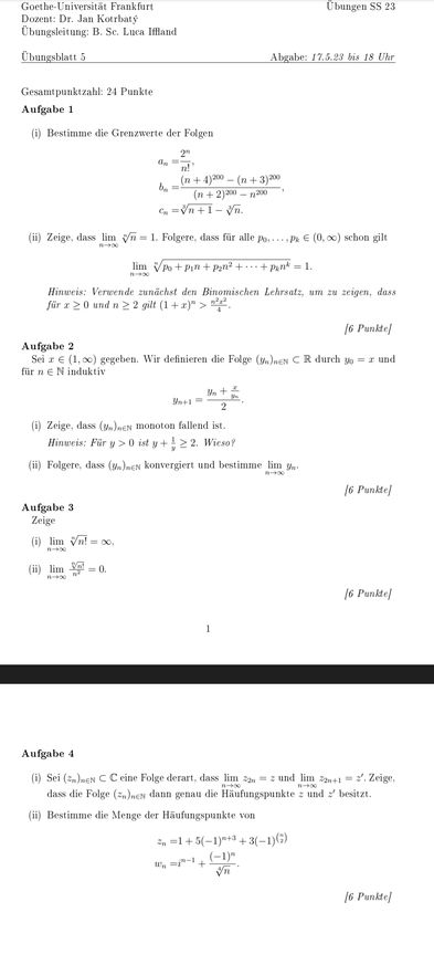 Analysis I Goethe Uni SoSe23 Blatt 5