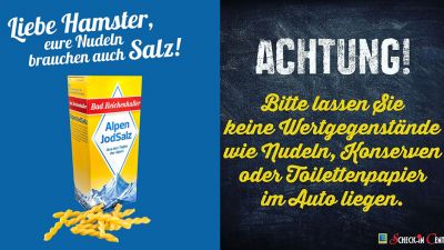 Damit ist das Rennen latürnich wieder eröffnet. Mittwoch 12 Uhr kommender Woche wird ein neuer Gewinner der ab dann einlaufenden Beiträge in diesem Thread gekürt. Besonders witzige Kandidaten aus anderen Threads dürfen ebenfalls vorgeschlagen werden (Link hier einstellen), bei Gleichstand entscheidet total undemokratisch mein ganz persönlicher Lachpegel. Und der Wahnsinnspreis dieser Woche ist *Trommelwirbel* eine Gesichtsmaske (die ganze Zeit zuhause will schließlich genutzt werden), eine Publikation der Bundeszentrale für politische Bildung (die ganze Zeit zuhause will schließlich genutzt werden) und natürlich auch diese Woche eine ganze Rolle Toilettenpapier (!!!). Die Alternative für Gewinner, die auf ihren Preis verzichten möchten ist Handseife und Handdesinfektion für das Obdachlosenlager hier am Flüssle (Obdachlose gehören aufgrund ihres Lebensstils und den begrenzten Möglichkeiten für Grundhygiene zu sorgen, sowie oft vielen Vorerkrankungen bei schlechtem gesundheitlichen Gesamtzustand zu den Risikogruppen). Viel Vergnügen uns allen und bleiben wir gesund ( DeadPoet : Brav weiter gesund werden!).