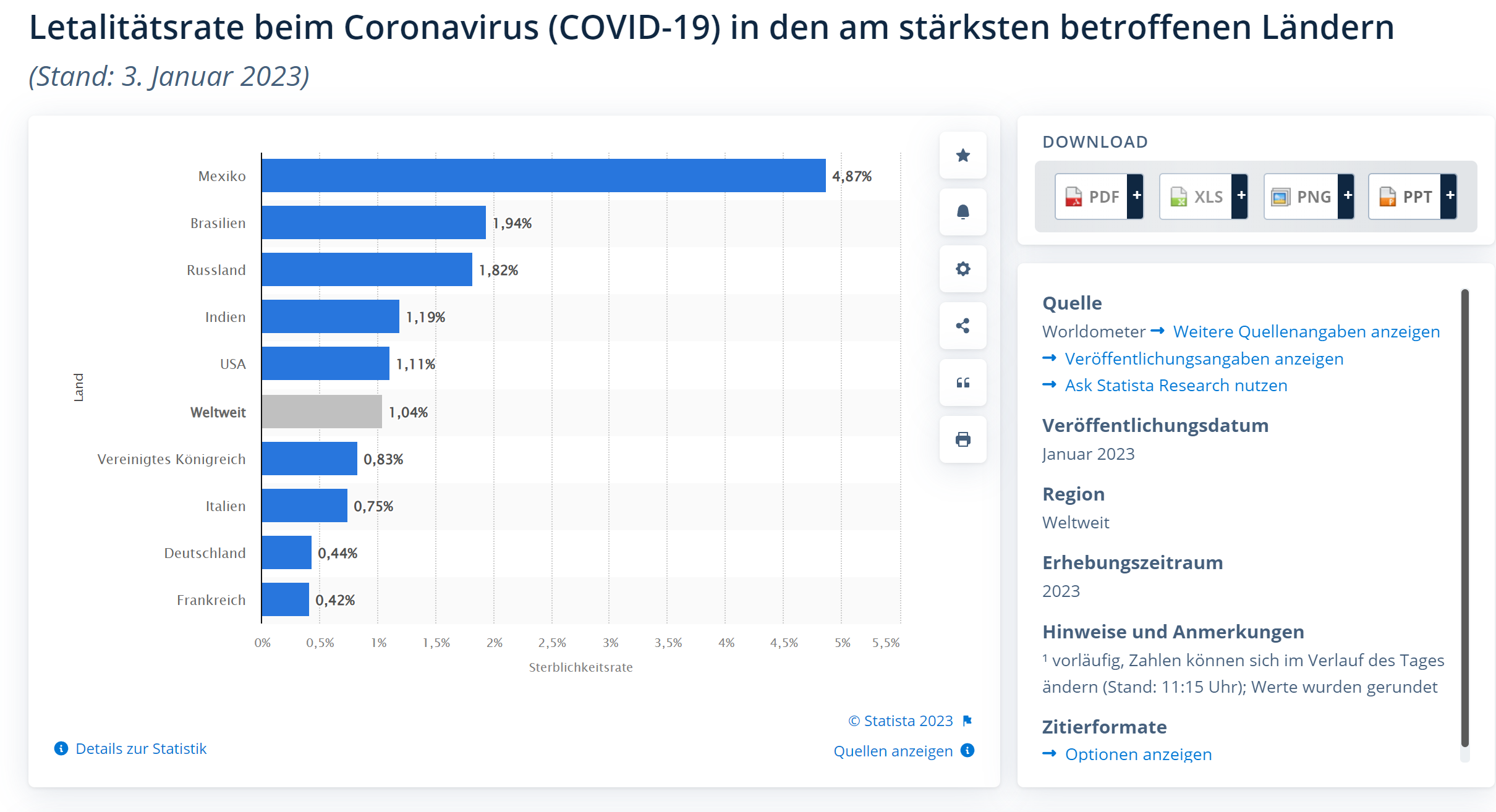 "Der durchschnittliche CO₂e Fußabdruck pro Kopf liegt in Deutschland bei 10,8 Tonnen. 31 Prozent, also 3,4 Tonnen, sind auf den sonstigen Konsum zurückzuführen. 2,2 Tonnen beziehen sich auf das Wohnen, 5 Prozent auf Strom und 20 Prozent auf Mobilität. Zusätzlich ergeben sich 1,7 Tonnen pro Kopf aufgrund der Ernährung und 0,8 Tonnen durch die öffentliche Infrastruktur im Allgemeinen. Das Klimaziel legt einen Fußabdruck von unter einer Tonne CO₂e pro Kopf in Deutschland fest." Aus https://www.bmuv.de/media/kohlenst…0Mobilit%C3%A4t. Auf jeden Fall verursacht das viel mehr Tote.