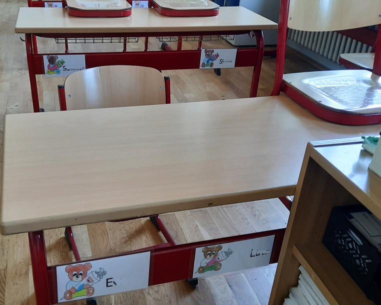 Das sieht schön aus. Bei unseren Tischen gibt es gar nicht das rote Teil, an dem die Schilder hängen. Oder habe ich das übersehen? Hast du auch Erstklässler? Ich ja, wie immer. Mein Schicksal, aber ich liebe sie dann irgendwann und wenn sie dann mal was größer sind, muss ich sie wieder abgeben ![]()