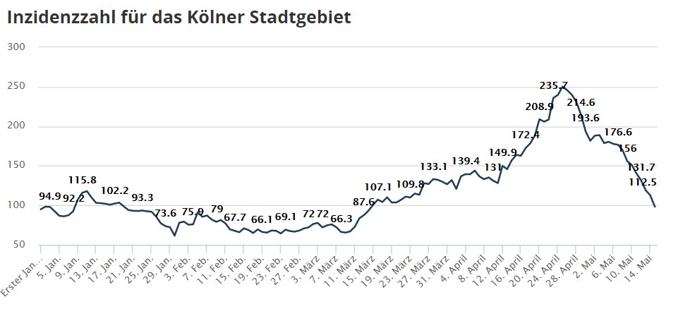 Aber bei der Mischung aus Wetter und Impfungen sind wir uns einig. Ich schätze, wie bereits oben ausgeführt, dass die Schnelltests ebenfalls dazu beigetragen haben, die Zahlen zu senken. Und vielleicht auch die Ausgangssperren. Das würde zumindest in Köln zeitlich einigermaßen passen.