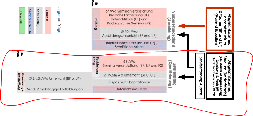 ich hoffe es geht euch gut und ihr kommt gut durch die CoViD-Krise. Ich habe eine Frage bzgl des Quereinstiegs in Niedersachsen. Auch wenn ich aktuell den OBAS interessanter finde vom System her, bin ich immer noch nach Möglichkeiten am suchen, etwas ähnliches in Niedersachsen zu finden, bei dem praktisch berufsbegleitend das Referendariat absolvieren (wie beim OBAS) und somit das 2. Staatsexamen bekomme. Bei meinen Recherchen bin auf einen Flyer (denke das dieser etwas älter ist) des Studienseminars Stade für BBS gestoßen (in Anhang). Vor allem die rotumkreiste Option interessiert mich. So wie ich das verstehe, dauert das ganze zwar etwas länger, aber am Ende hat man mehr Zeit, aber wird man dann auch verbeamtet und hat ein 2. Staatsexamen?