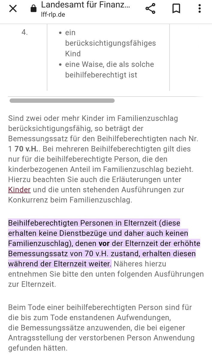 Genau das ist ja auch meine Frage, ab wann bekomme ich die 70% Beihilfe, sobald das 2. Kind auf der Welt ist (also auch in der Elternzeit) oder erst nach der Elternzeit, da ich aktuell "nur" 50% Beihilfe erhalte.