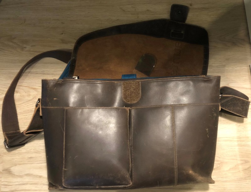 Gebrauchsspuren: Einige Kratzer, wie üblich bei Leder. Die Tasche wird mit der Zeit aber immer schöner dadurch.