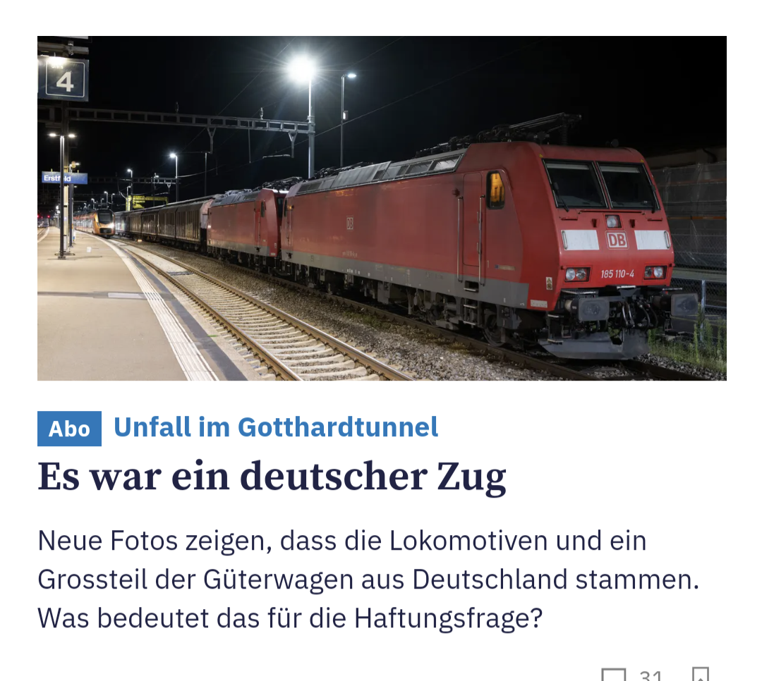 Ja, das schrieb ich doch. Es wird spekuliert. Und ich spekuliere ein bisschen mit. Was man bereits weiss ist, dass der Zug die vorgeschriebene Eingangskontrolle in den Tunnel ohne Beanstanden passiert hat. Dafür ist die SBB zuständig. Es gab 2015 einen ähnlichen Fall, ich muss mal lesen, wie das damals entschieden wurde.