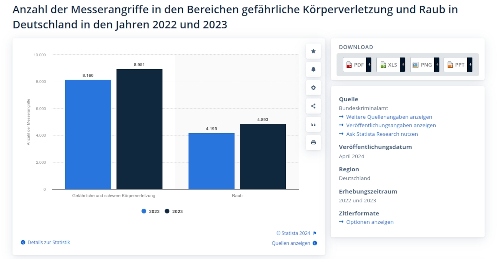 "Fast 94 Prozent der Tatverdächtigen seien männlich gewesen, 55 Prozent waren Deutsche und 45 Prozent Nichtdeutsche. Von den nichtdeutschen Verdächtigen führten Syrer die Statistik an, gefolgt von Türken, Irakern und Rumänen. Zuwanderer wie Asylbewerber machten unter den Messer-Tatverdächtigen 18 Prozent aus."