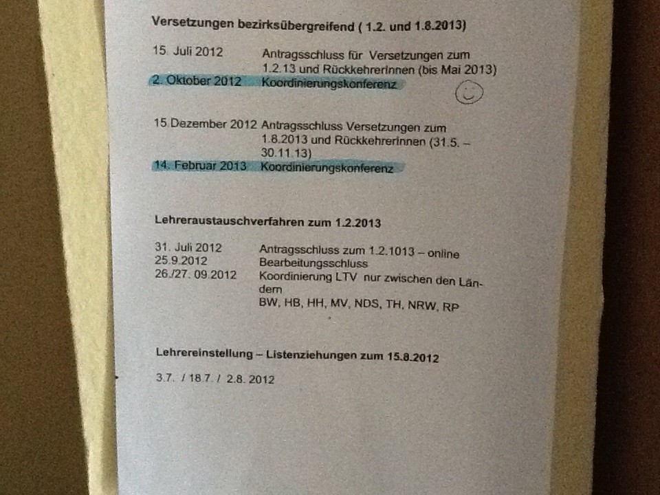 + 8.5.2013 Brief mit der endgültigen Zusage der Versetzung auf dem Dienstweg (über Schulamt durch die Schule)Geschafft!