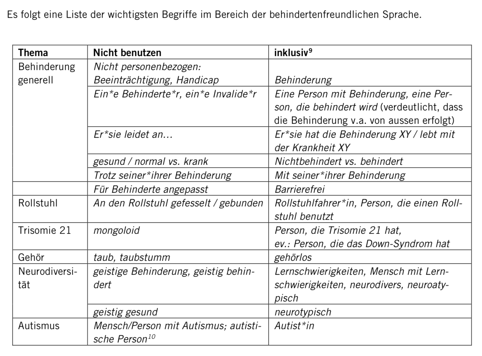 Ich verstehe nicht, warum man nicht von Behinderten reden soll, sondern von Personen mit Behinderung, aber Personen mit Autismus sollen als Autisten bezeichnet werden. Ist das ein Fehler in der Tabelle?