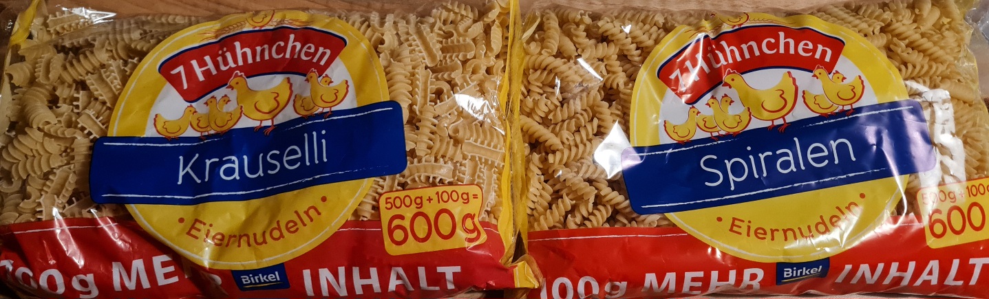 Lieblingssorte Nudeln: Rückgrat-Nudeln von 7Hühnchen Oder Spiralen von 7Hühnchen.