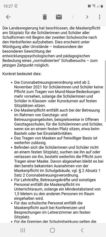 In der Mail sieht nur, dass es vertretbar ist, wenn bewährte Schutzmaßnahmen wie Lüften und beachten der Hygieneregeln auch weiterhin konsequent umgesetzt werden.