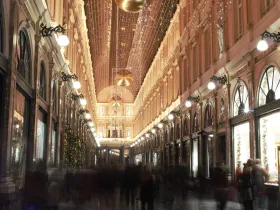 Wikipedia schreibt: "Die Königlichen Sankt-Hubertus-Galerien (französisch: Galeries royales Saint-Hubert; niederländisch: Koninklijke Sint-Hubertusgalerijen) ist eine Ladenpassage in Brüssel. Die 1847 eröffnete Passage hatte zusammen mit der Passage in Sankt Petersburg (eröffnet 1848) und der Galleria Vittorio Emanuele II in Mailand (eröffnet 1867) großen Einfluss auf die spätere Gestaltung von Ladenpassagen."