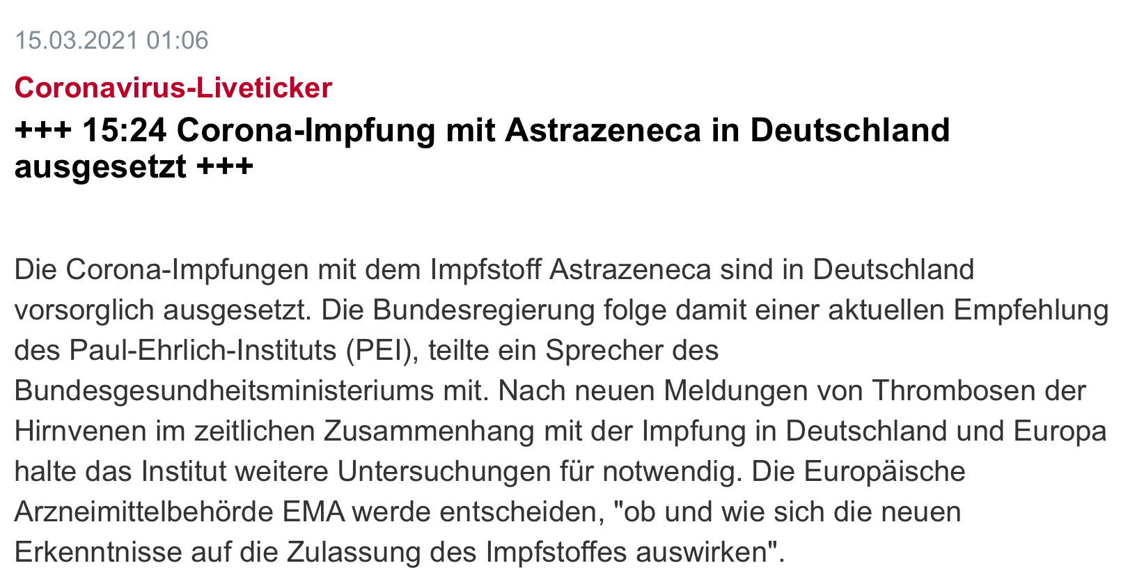 Hier noch etwas zur Thrombosegefahr: UK, jeweils ca. 10 Mio Dosen verimpft.
