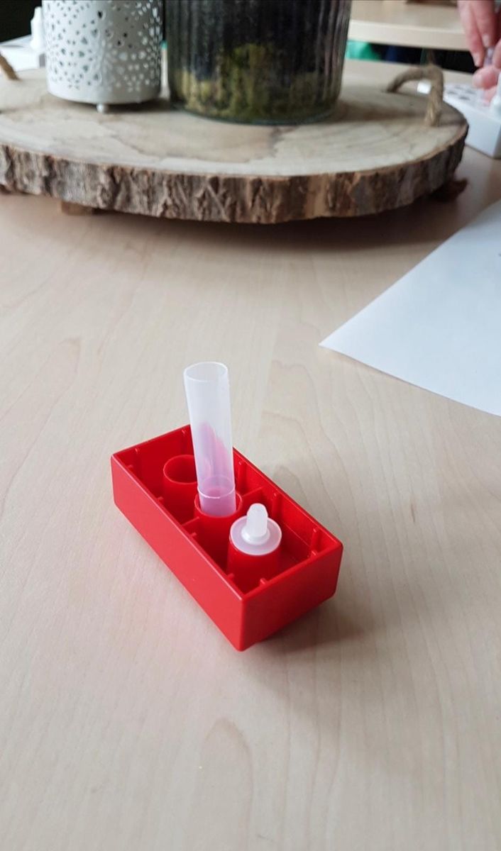 Dann bräuchte ich eine sinnvolle Lagerung für die Testkits bis zum Ablauf der 15 Minuten, die dann auch eindeutig beschriftet sind, nicht dass man dann nicht weiß, wer jetzt letztendlich positiv ist...Unsere Erstklässler schaffen das ohne Probleme. Da muss man aber auch nicht aufgeregt sein und das sollte man als Lehrkraft vermitteln. Wie gesagt liegen die Testkits bei mir auf einem Tablett in einem Namenfeld.