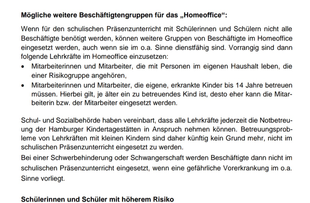 In den meisten Bundesländern hat man doch die Möglichkeit gar nicht zuhause zu bleiben, bei uns werden nur Leute die selber der Risikogruppe angehören freigestellt bei der Öffnung der Schulen, bei der Notbetreuung war das noch anders.