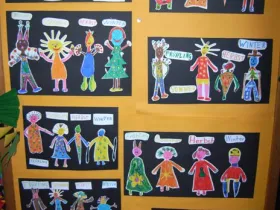 Darauf achten, dass die Kinder mit wenig Wasser und viel Farbe deckend malen, damit die Farben schön leuchten.
